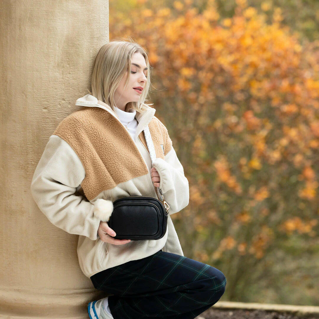 Crossbody Dog Walking Bag - Vegan Leather - Black